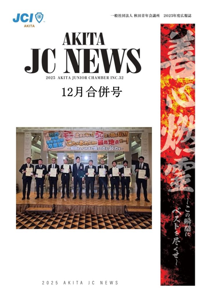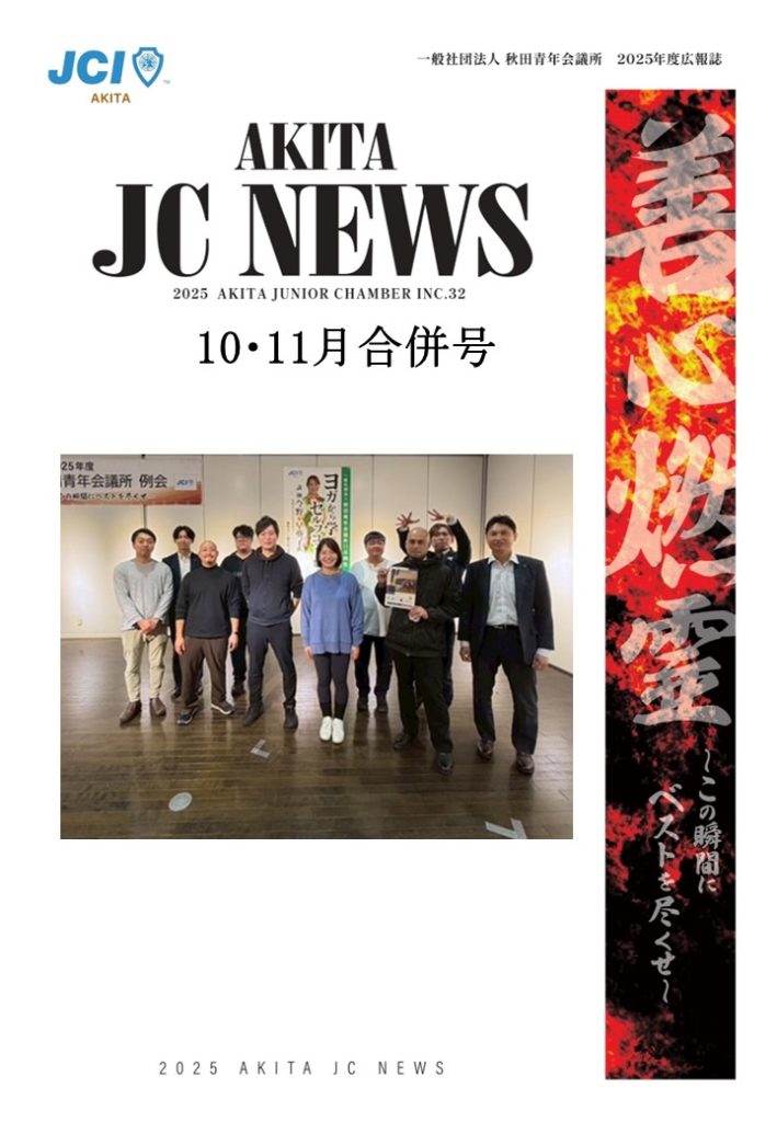 秋田青年会議所は、明るい豊かなあきたを目指しています。それは、自己成長はもちろん、あきたの方々の支えや協力があってこそ叶えられます。これからもあきたに貢献していく団体であるために、さらに成長し地域とのつながりを強固なものにする必要があると思います。青年会議所は、様々な成長の機会を提供してくれます。それは、多くの仲間との繋がり、地域を超えて多くの情報を共有できる環境があるからこそだと思います。さらにあきたに貢献するために、自ら考え積極的に行動することでさらなる成長に努めます。そして、会員一人ひとりが未来を担う青年経済人としてあきたに貢献してまいります。