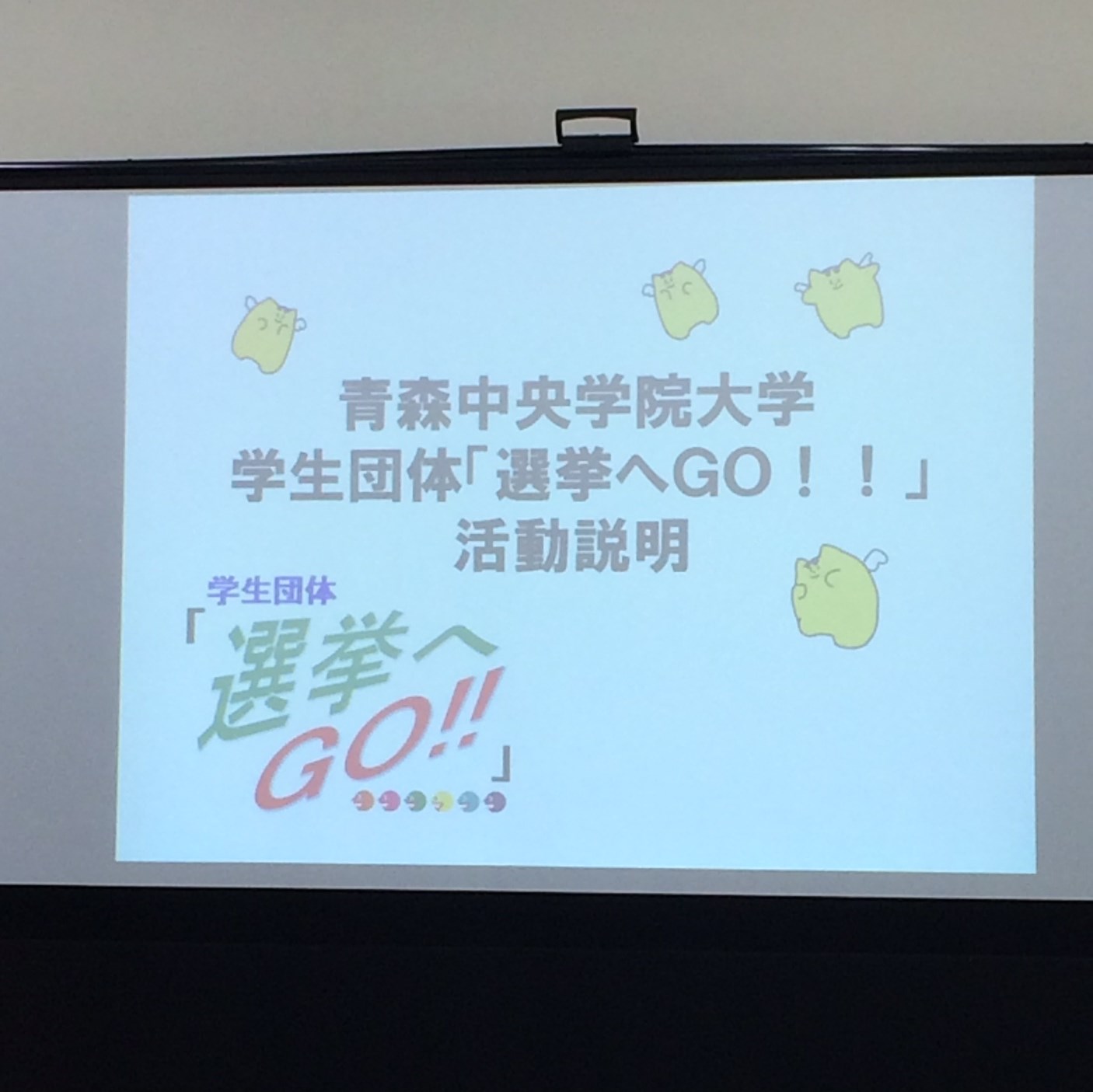 秋田の大学生を中心に参加していただき、すでに同様の活動を行っている青森県の学生団体「選挙へGO」をお招きして、青森県での活動の内容や成功例、今後の展望などを講演していただきました。