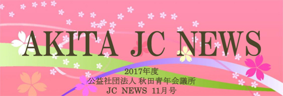 <<JCニュース 11月号を発行しました>> 投稿日: 2017年12月15日 (Updated: 2017年12月21日) 投稿者: akitajc JCニュース11月号を発行いたしました。 (上記バナーをクリックしていただくことで、新しいタブでJCニュースをご覧いただけます)