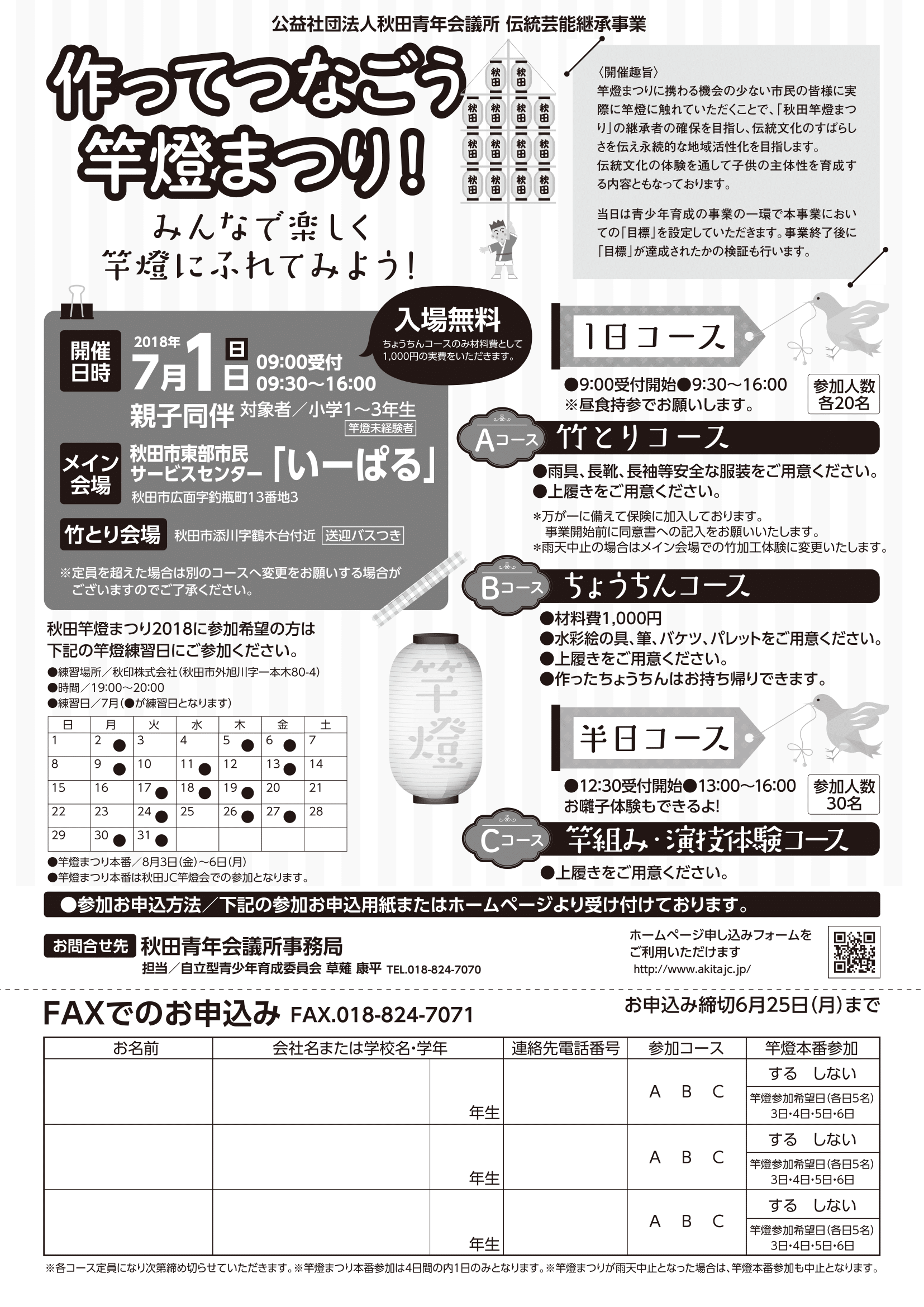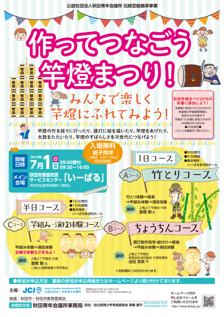 『作ってつなごう竿燈まつり!』をテーマに、下記の3コースにて体験学習型の事業を行います。
