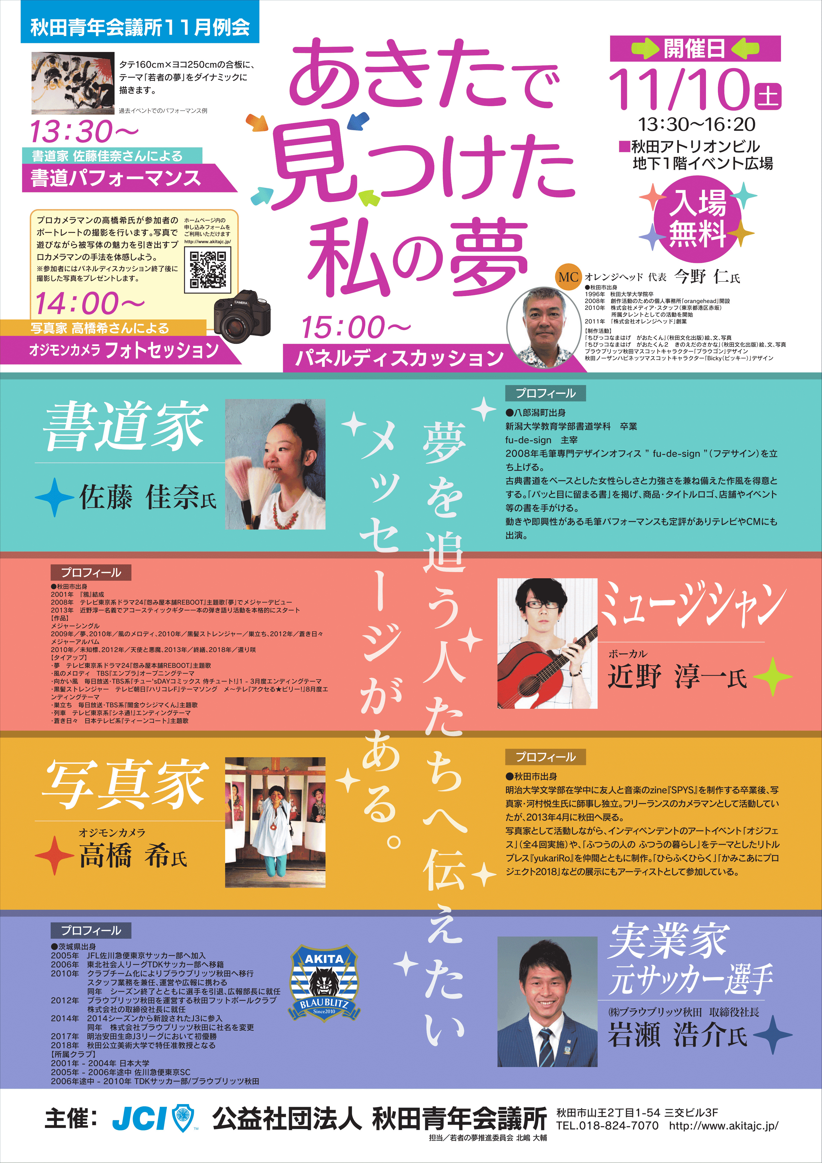 この度、公益社団法人秋田青年会議所では下記の通り11月例会を開催致します。