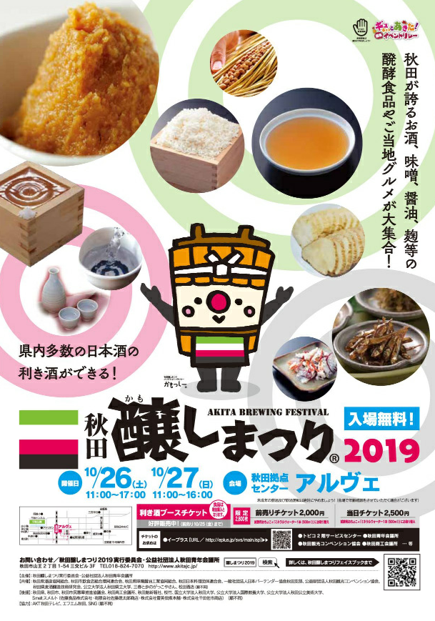 10月26日(土)~2日間、秋田最大の醗酵醸造文化の祭典【秋田醸しまつり2019】が開催されます!